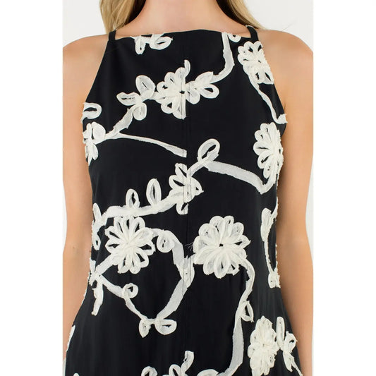 Blue & White Rose Printed Eyelet V-Neck Midi Dress
