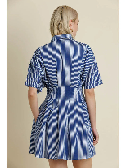 Hydrangea & White Stripe Flutter Sleeve Flare Tunic