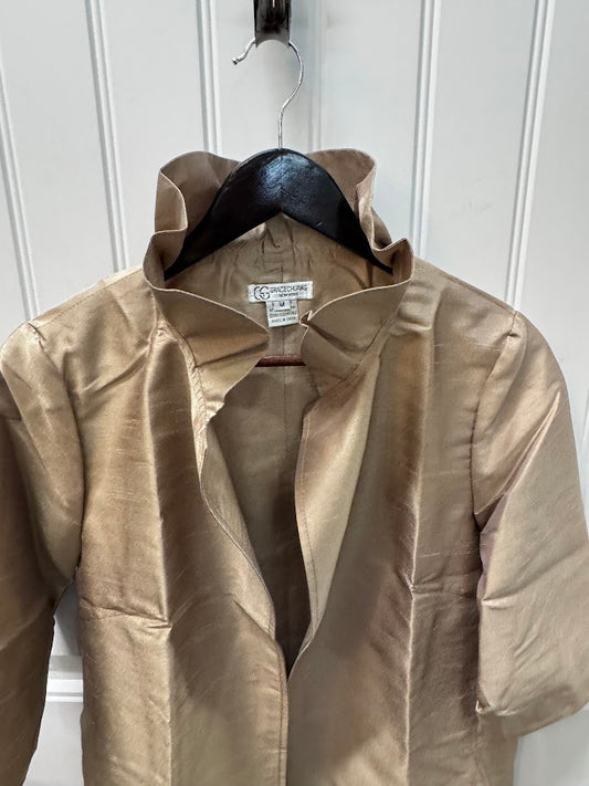 Signature | Foiled Textured Jacquard Trapeze Jacket With Statement Button