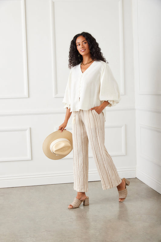 Stripe Flare Sleeve Pick Up Top