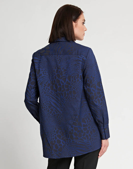 Betty Long Sleeve Cotton Tunic- Sapphire/Black