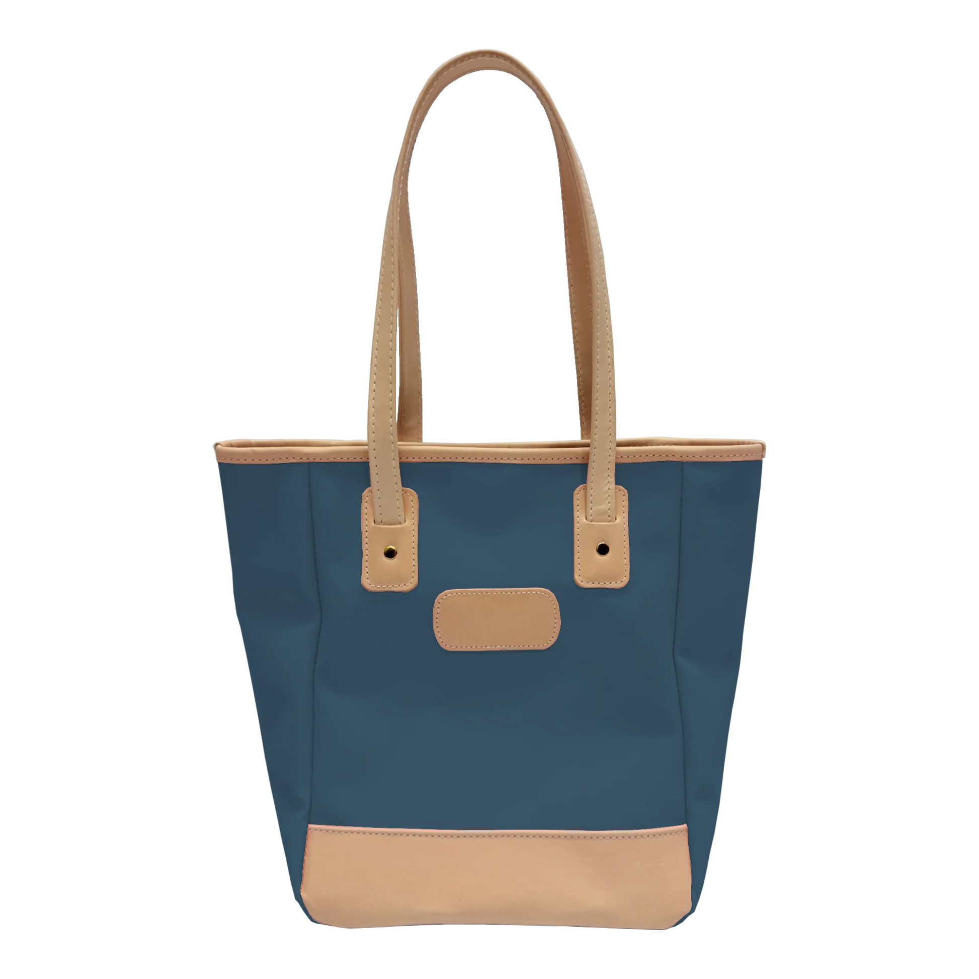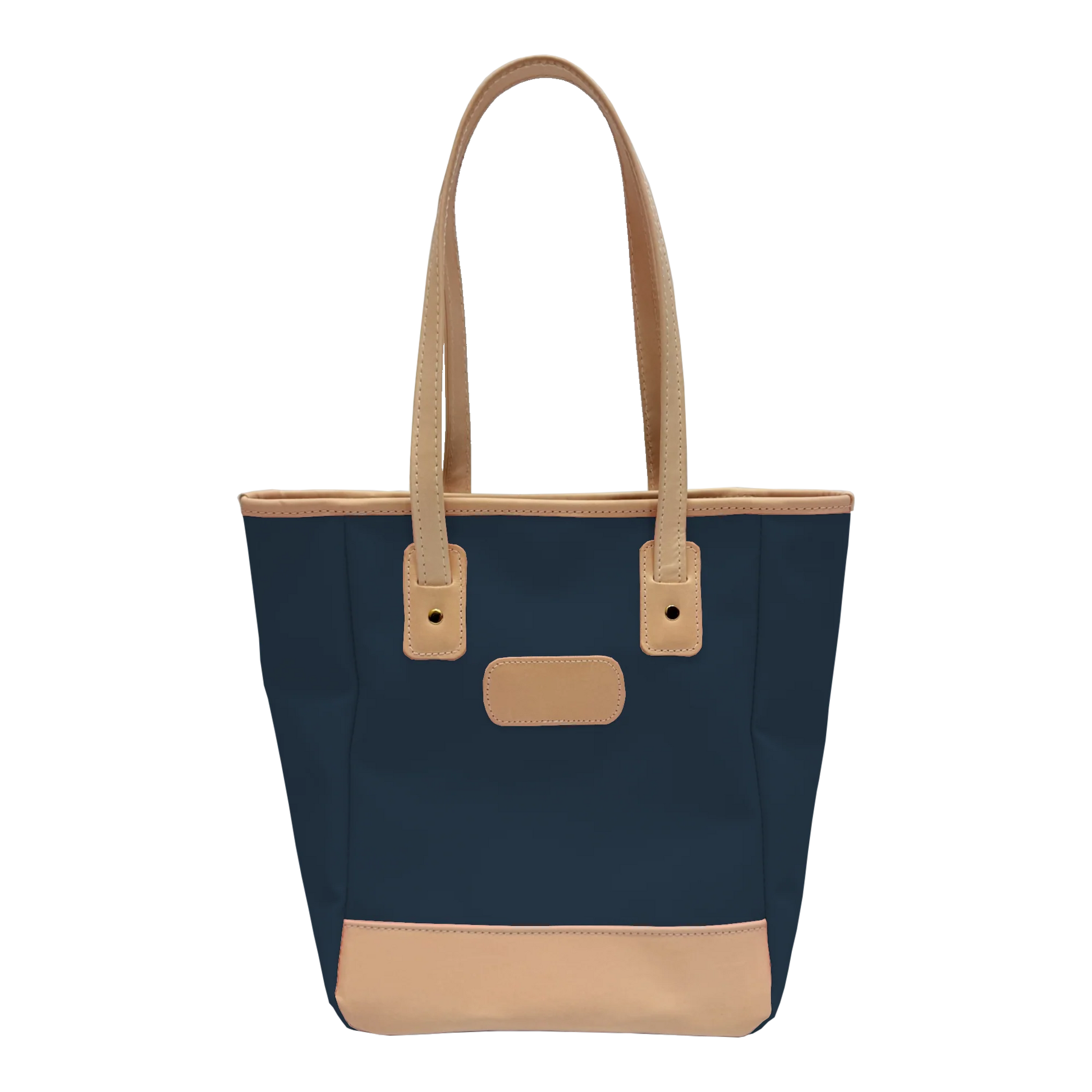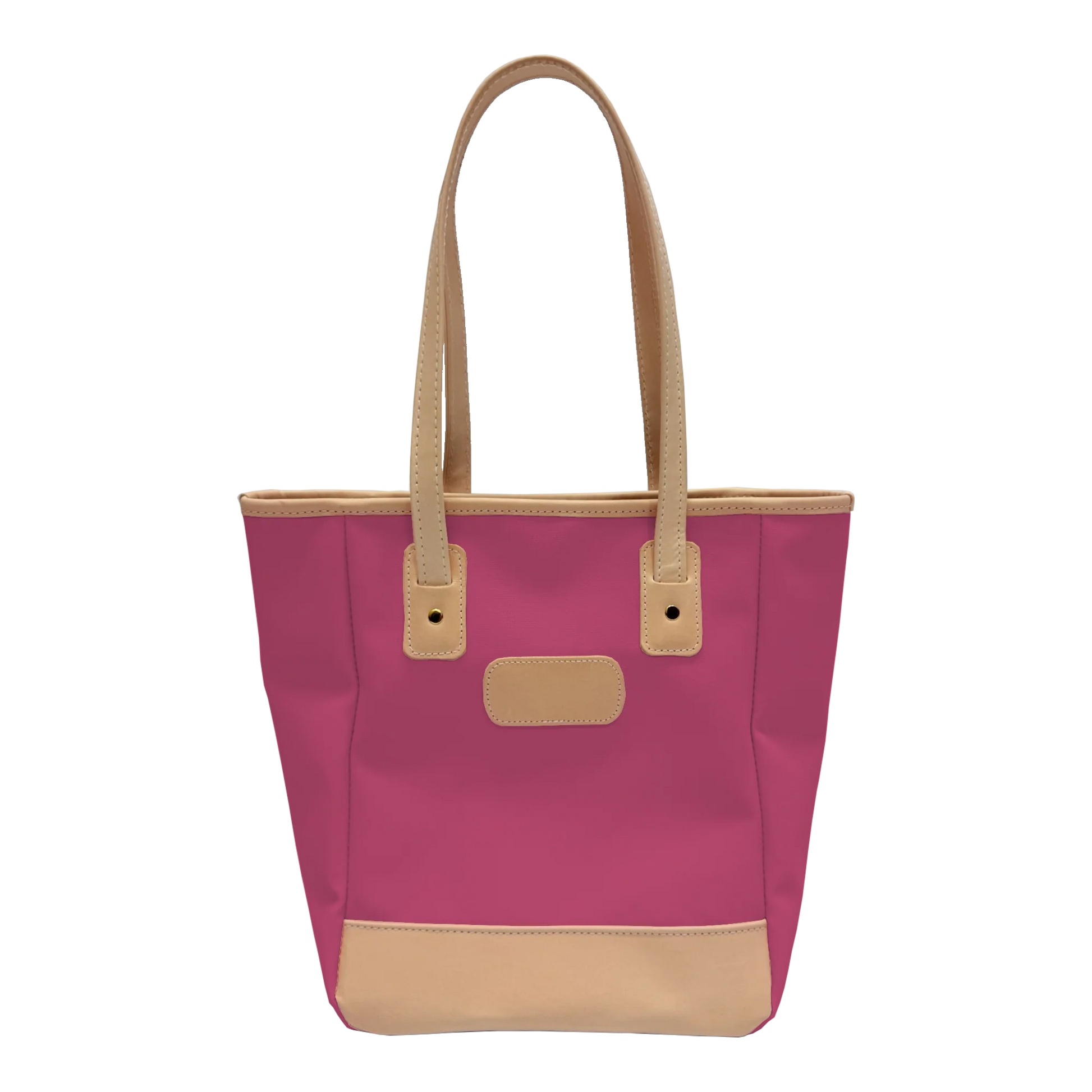 A simple yet classy looking small tote or large purse with a handy outside pocket for a cell phone, keys, or other often-used items. Also includes four open and one zippered inside pockets.