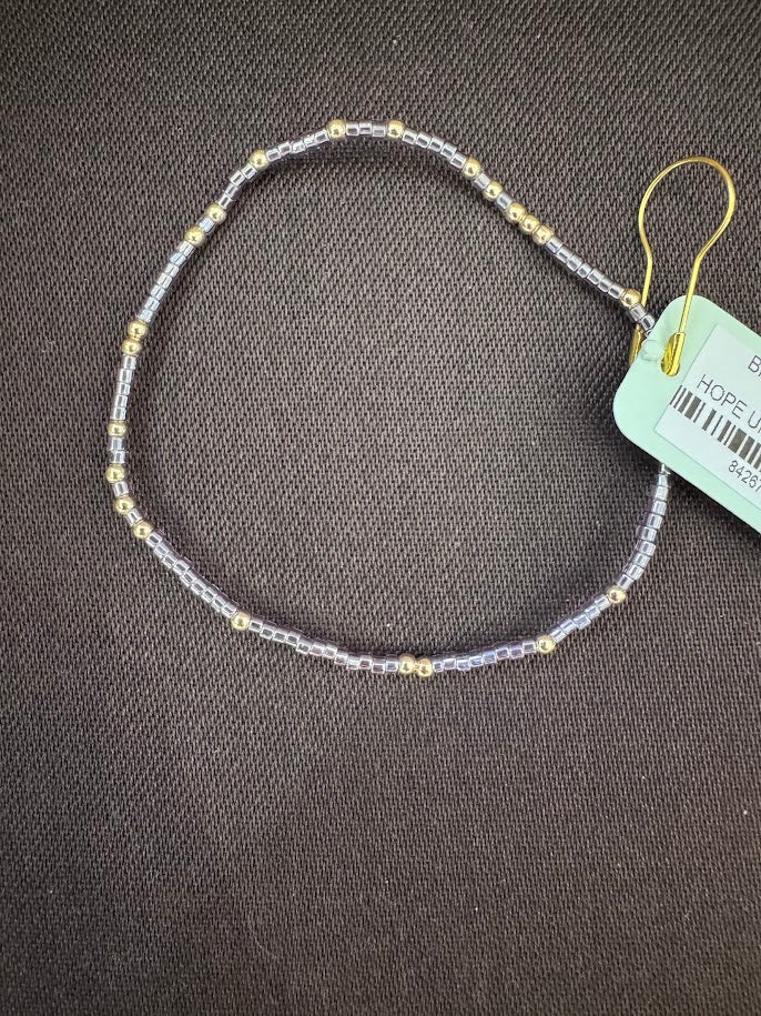 Hand beaded on high performance elastic for a slight stretch to easily roll on and off your wrist