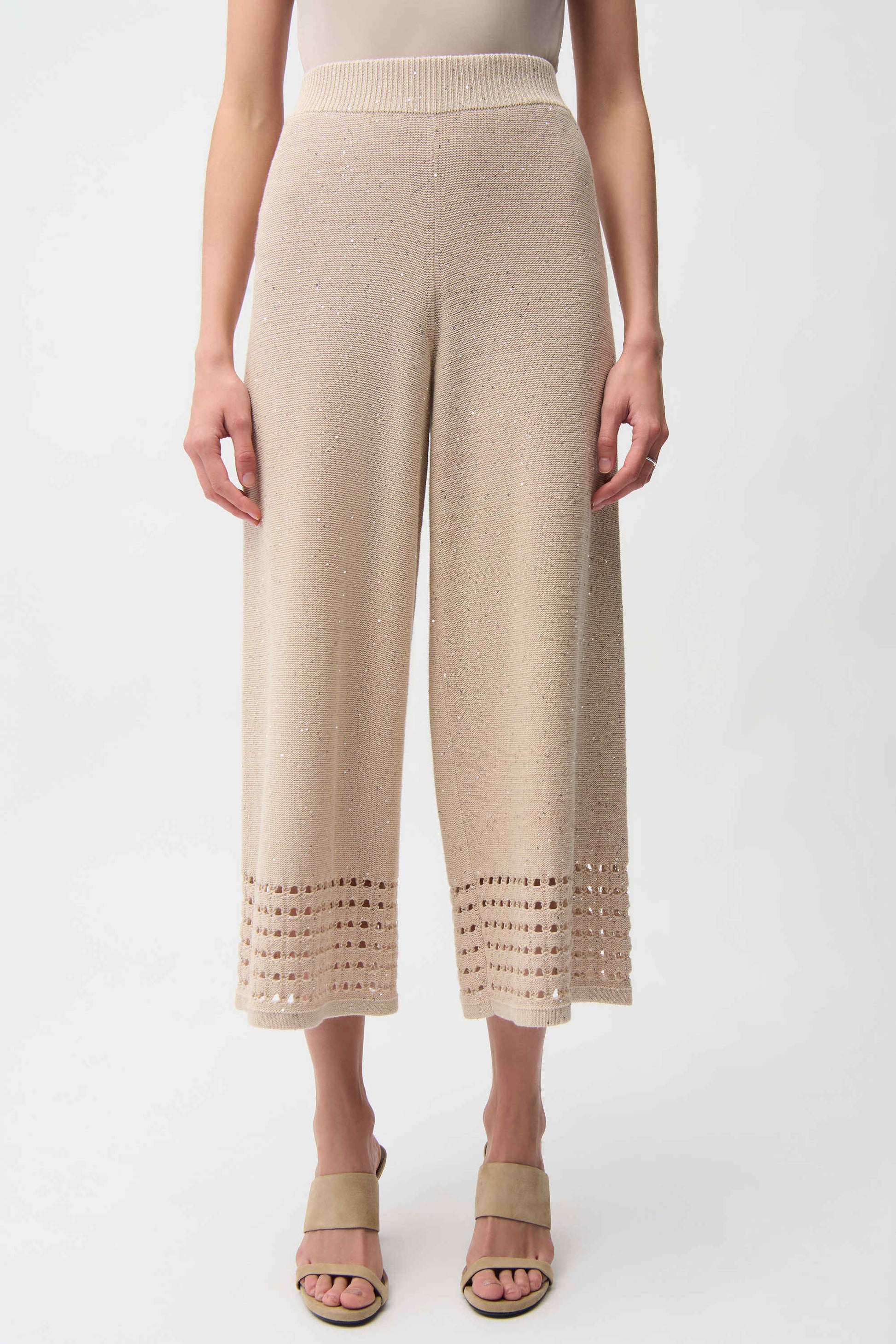 Sequins Yarn Culotte Pants With Open Stitch Border