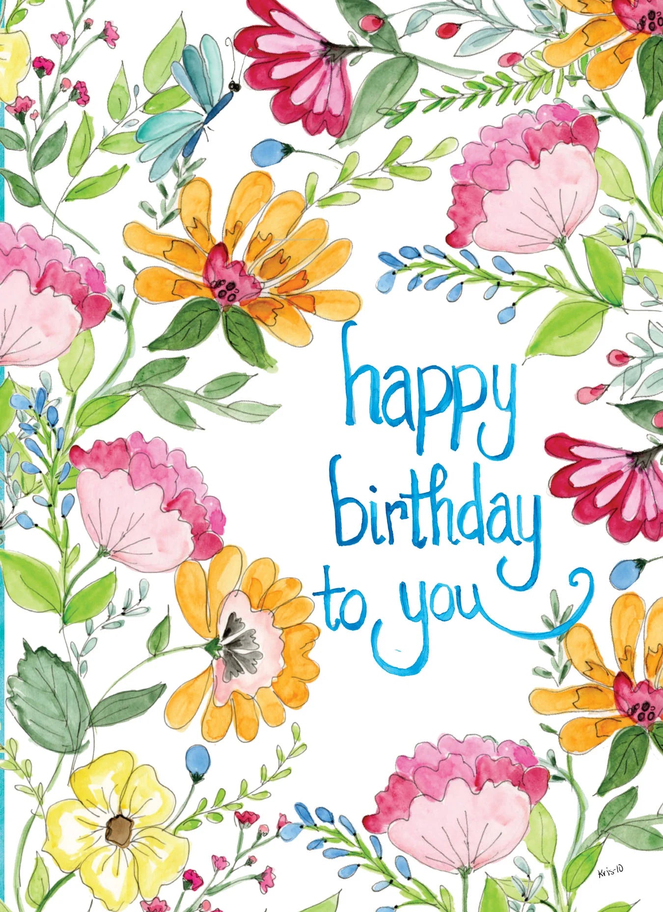 This Spring Garden Floral birthday card was illustrated by hand.