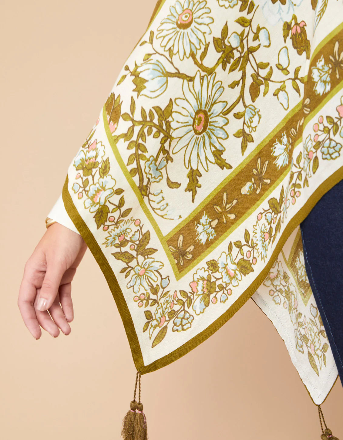 Just enough to chase away the chill, our Topper is a cape-like scarf that quickly wraps you in a soft, linen and viscose blend, while the fringe tassels sway with style.